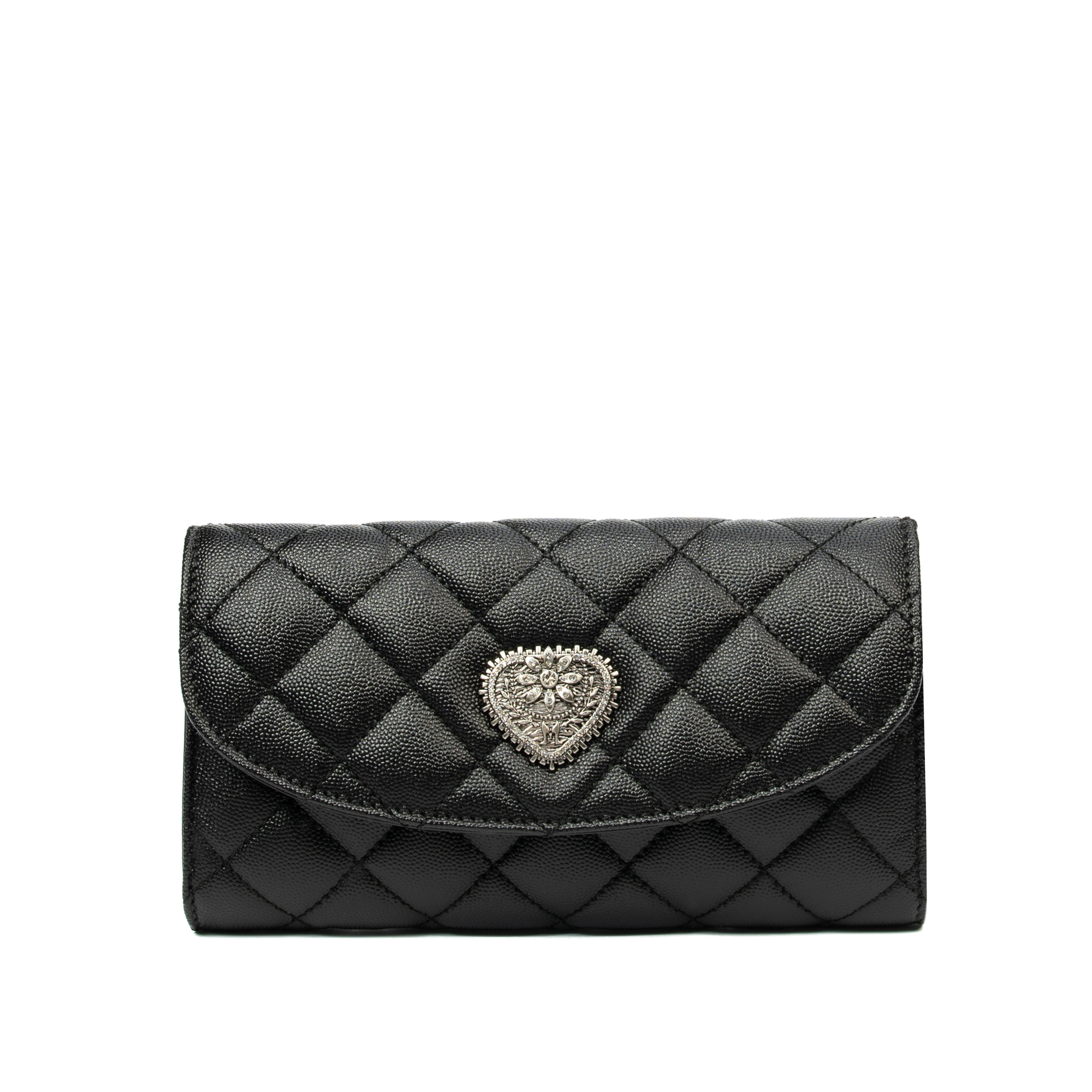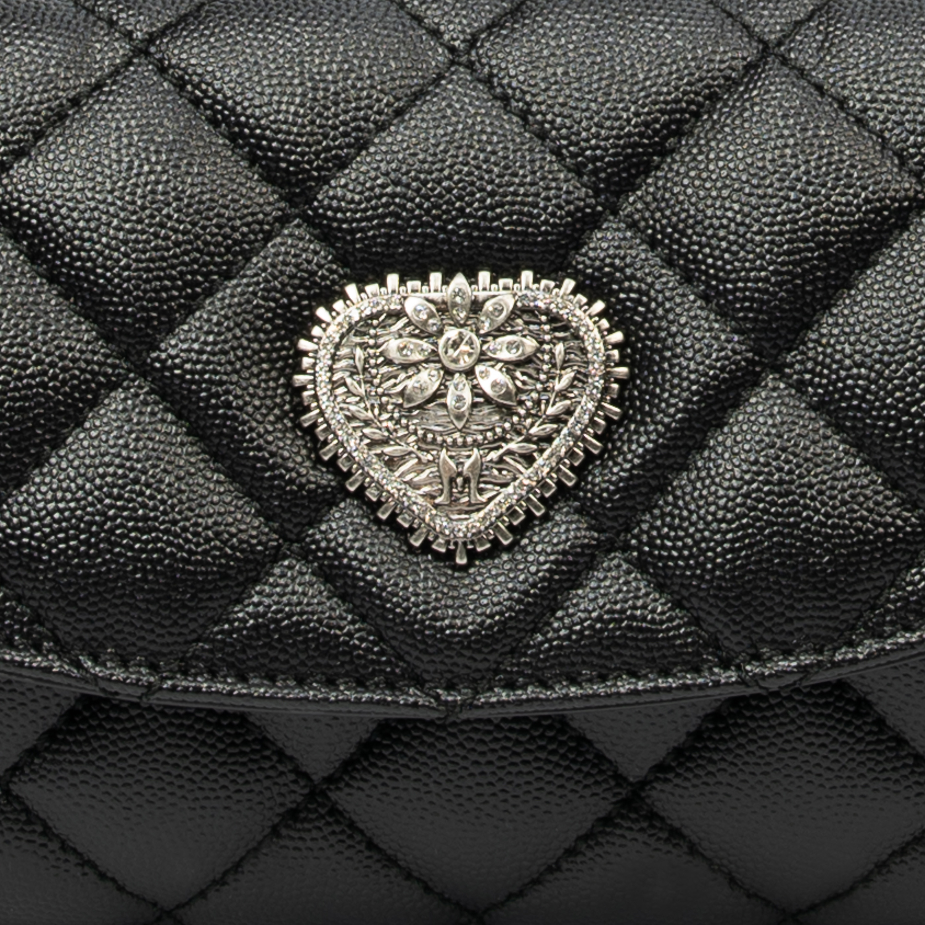 Тази дамска чанта от естествена кожа е от онези модели, които веднага привличат вниманието и те карат да я искаш в гардероба си. Със своят капитониран дизайн и сребърно сърцевидно приложение, има онзи „уоу фактор“, който издига всяко облекло, независимо дали отиваш на бързо излизане в града или на специално събитие. Сезон след сезон ще откриеш, че тази чанта от естествена кожа се съчетава почти с всяко облекло. От дънки и тениска до елегантни рокли. Достатъчно е универсална, за да стане „надеждна приятелка“ на гардероба ти. Цена на производител!