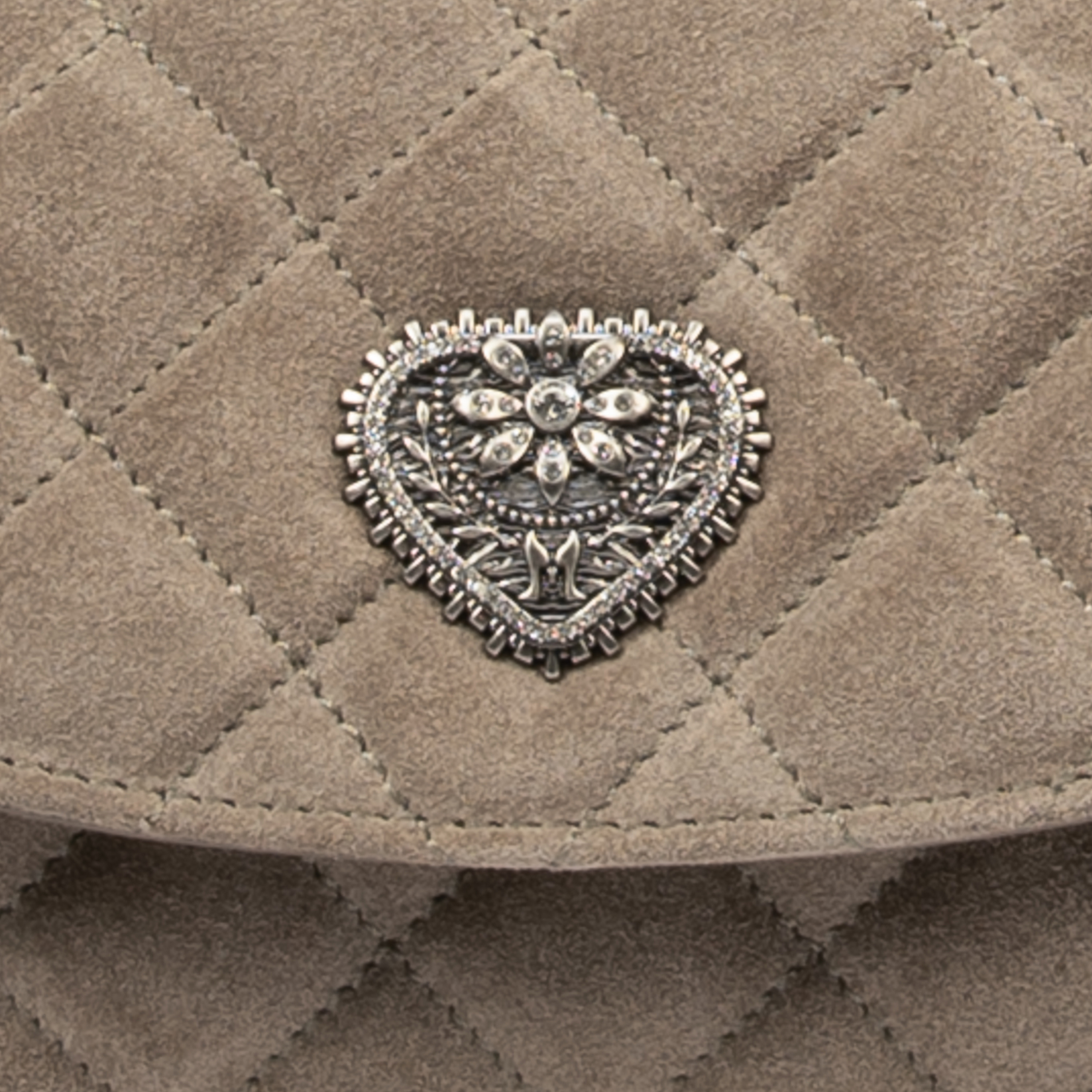 Тази дамска чанта през рамо от велур е от онези модели, които веднага привличат вниманието и те карат да я искаш в гардероба си. С матласовия дизайн и сребърното приложение във формата на сърце, тя има този „уау фактор“, който вдига всяко облекло, независимо дали отиваш на бързо излизане в града или на специално събитие. Сезон след сезон ще откриваш, че тази чанта в естествена кожа пасва на почти всяко облекло. От дънки и тениска до елегантни рокли. Толкова е универсална, че ще стане „верният приятел“ на гардероба ти. Производителна цена!