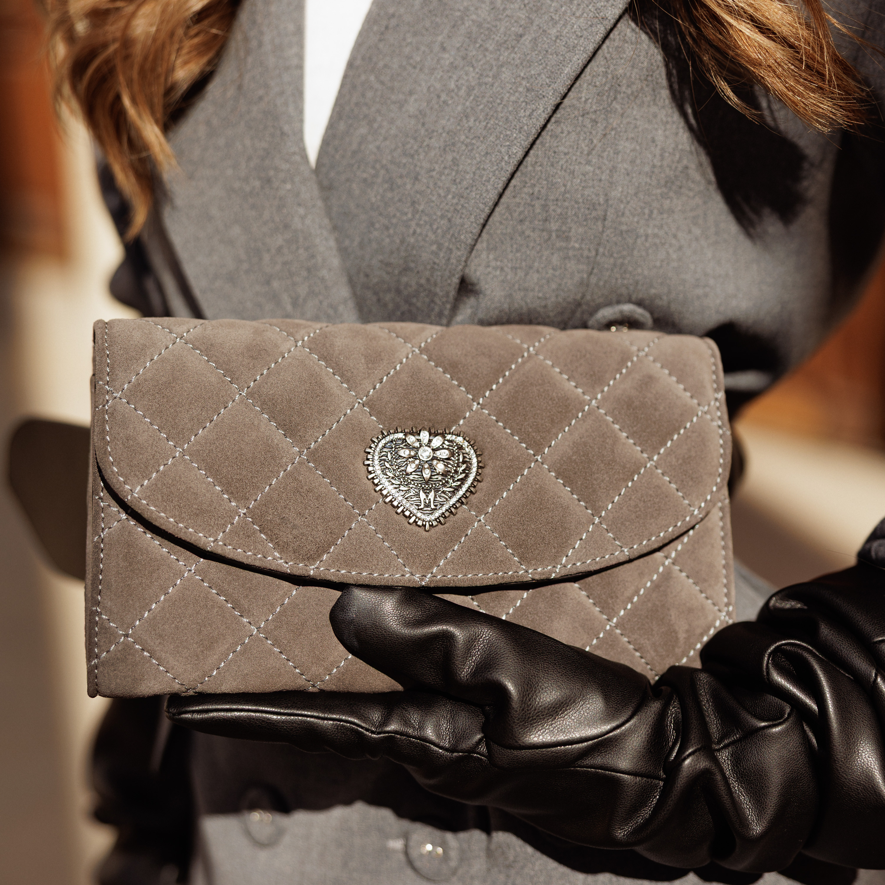 Тази дамска чанта от велур е от типа модел, който веднага привлича вниманието и те кара да я искаш в гардероба си. С матласения дизайн и сребристия апликация във формата на сърце, тя има онзи "уау фактор", който повдига всяка визия, независимо дали отиваш на бърза разходка в града или на специално събитие. Сезон след сезон ще откриваш, че тази панна чанта от естествена кожа пасва на почти всяко облекло. От дънки и тениска до елегантни рокли. Толкова е универсална, че може да стане „надеждна приятелка“ на гардероба ти. Цена от производител!