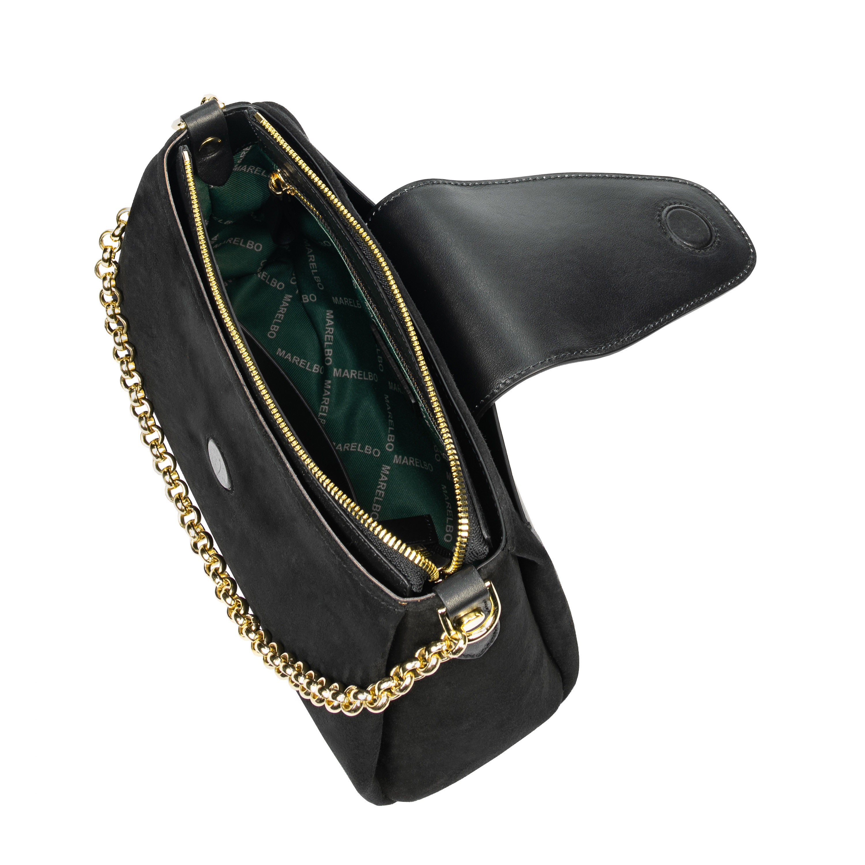 Тази дамска чанта за рамо от естествена кожа марка Marelbo се отличава с приятния си външен вид и качеството на използваните материали. Естествената кожа има приятна текстура на допир, а комбинацията между велур и гладка кожа й придава особен вид. Това е чанта, подходяща за ежедневно ползване и за различни контексти. Златистата метална верига и декоративният елемент под формата на сърце привличат вниманието с грижливо изпипаните си детайли. Закопчаването е сигурно, така че личните вещи са в безопасност по време на носене. Металните елементи са устойчиви и запазват вида си с времето. Поръчайте веднага!