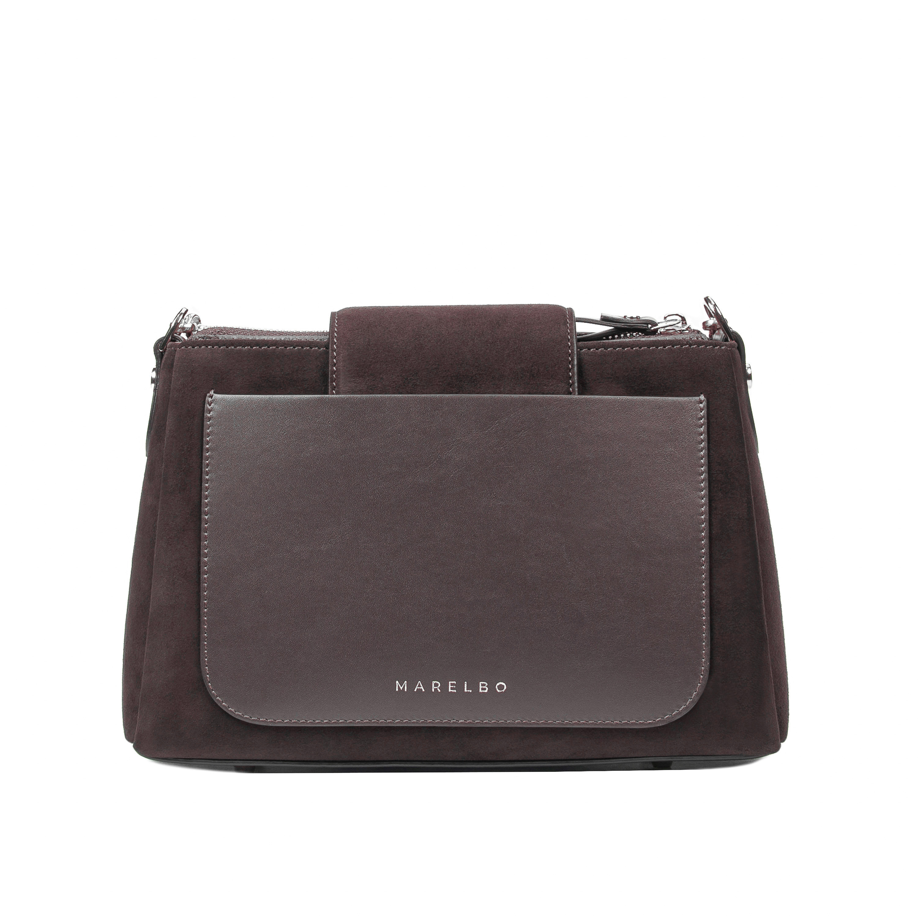 Тази дамска чанта за рамо от естествена кожа, марка Marelbo, се откроява с приятния си вид и с качеството на използваните материали. Естествената кожа има приятна текстура на допир, а комбинацията между велур и гладка кожа придава специално присъствие. Това е чанта, подходяща за ежедневна употреба и различни контексти. Златистата метална верижка и декоративният елемент във формата на сърце привличат внимание с техните внимателно изработени детайли. Закопчаването е сигурно, така че личните вещи са в безопасност по време на носене. Металните елементи са устойчиви и запазват външния си вид с времето. Поръчайте сега!