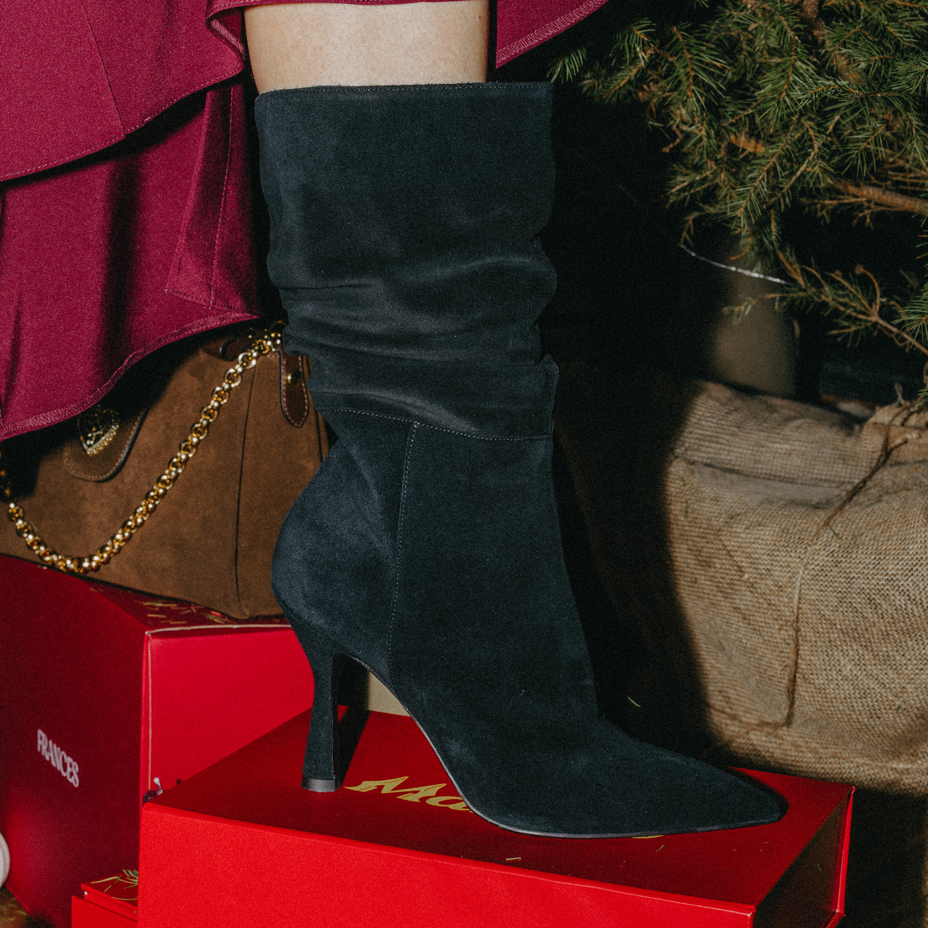 • Код обувки: Дамски ботуши с ток 1410 черен велур.