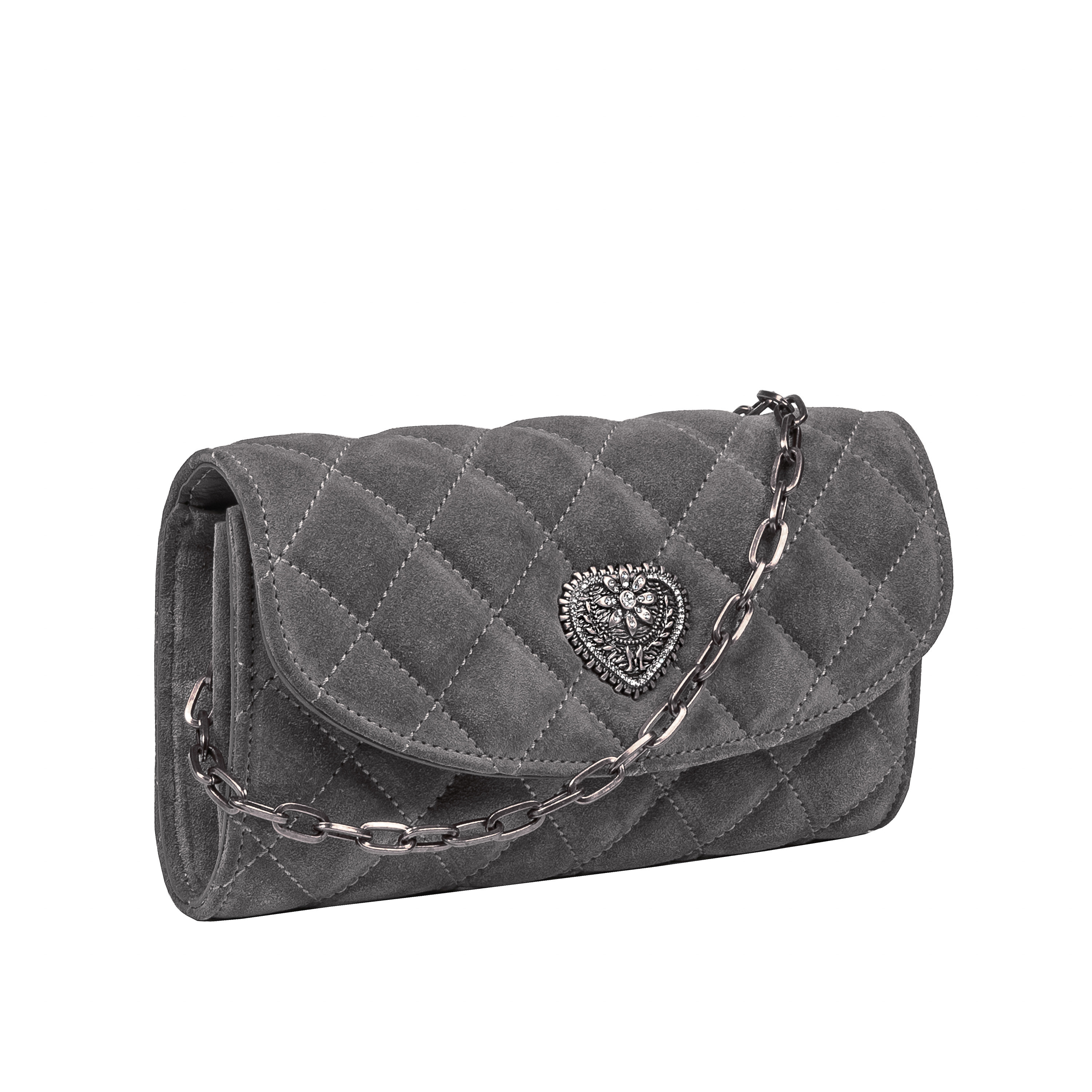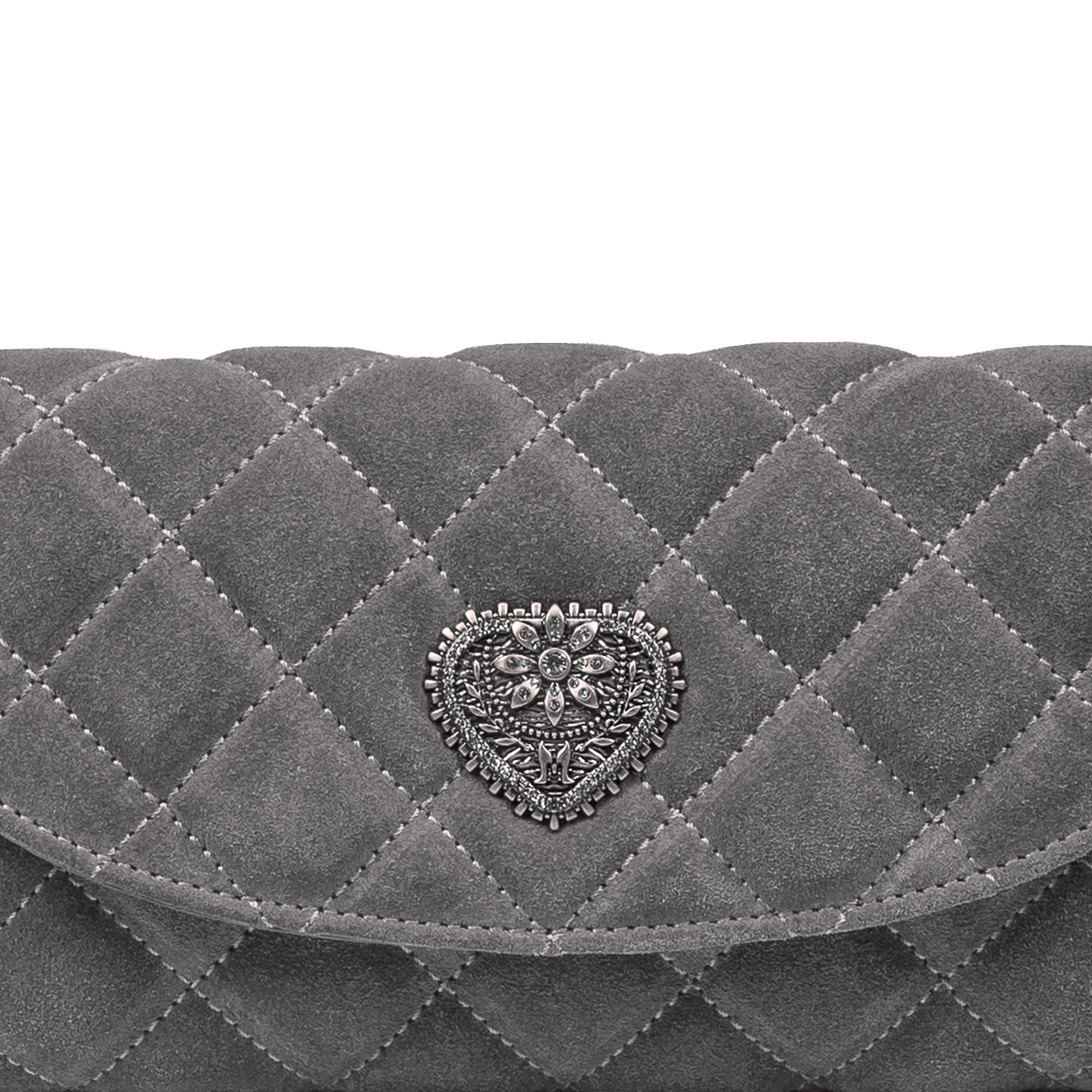 Тази кожена дамска чанта за рамо от велур е от типа модели, които веднага привличат вниманието и те карат да я искаш в гардероба си. С мателасения дизайн и сребърната апликация във форма на сърце, има този „уау фактор“, който повишава всяко облекло, независимо дали отиваш на бърза разходка в града или на специално събитие. Сезон след сезон ще откриеш, че тази чанта в цвят панна от естествена кожа се комбинира с почти всяко облекло. От дънки и тениска до елегантни рокли. Тя е достатъчно универсална, за да стане „надежден приятел“ на гардероба ти. Цена от производителя!