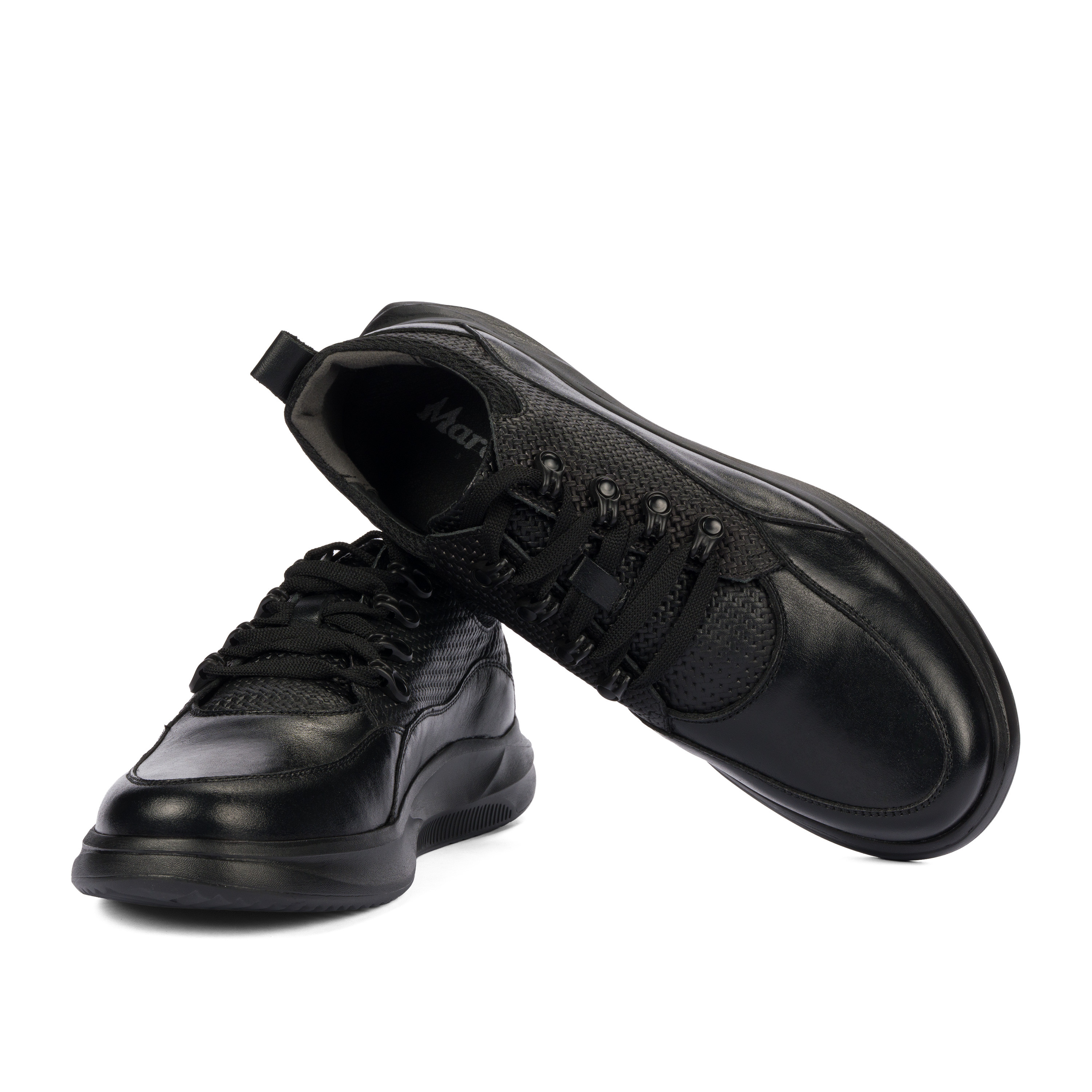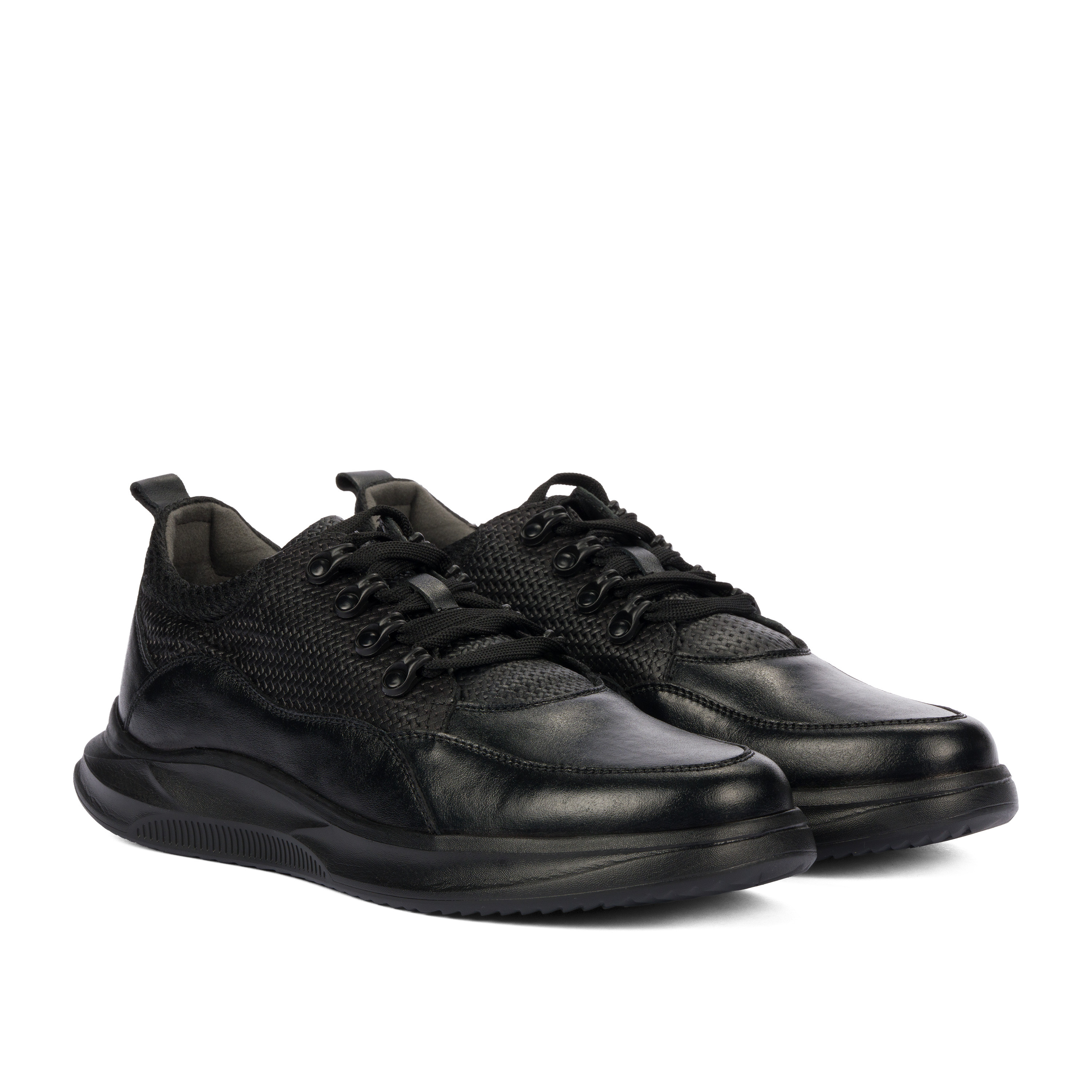 Мъжки обувки от естествена кожа. Комбинацията от гладка кожа и пресована кожа е привлекателна за този модел. Леко повдигнатата и удобна подметка е перфектна за натоварените дни. Качество и комфорт на цената на производителя.